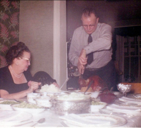My father would carry the perfectly browned bird in from the kitchen… and resplendent it was, coming to us upon the wedding gifted china platter, while receiving praises of ooooo’s and ahhhh’s from us all.
